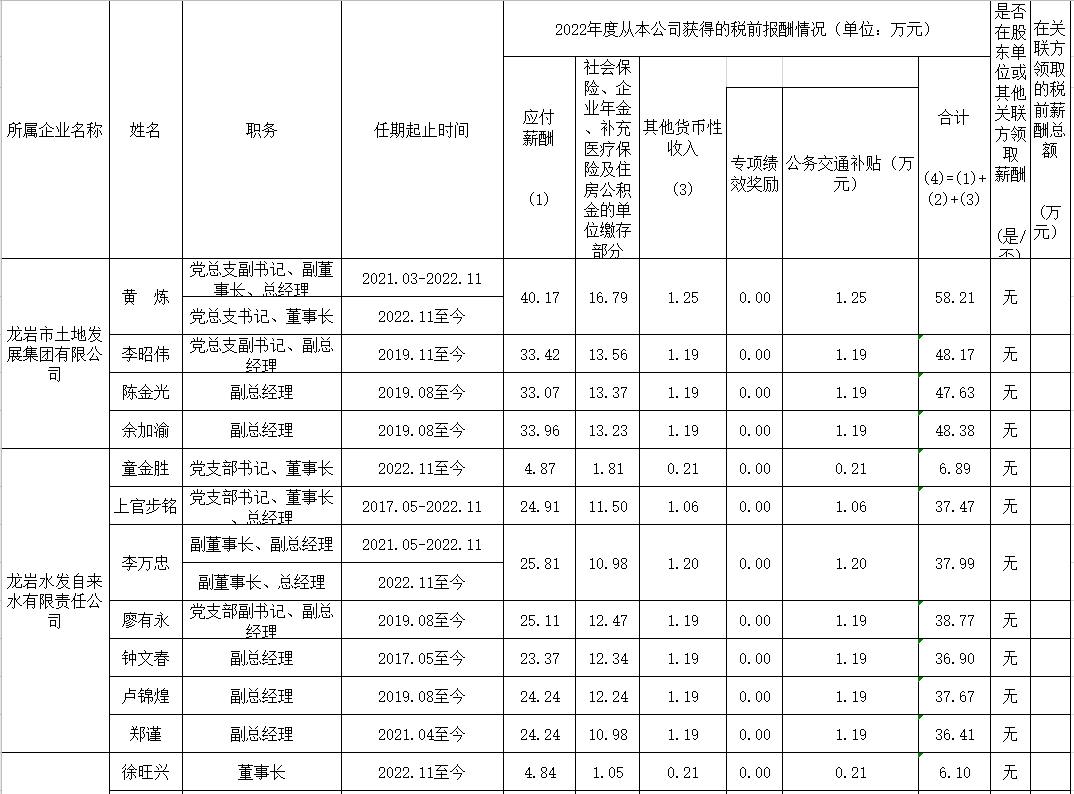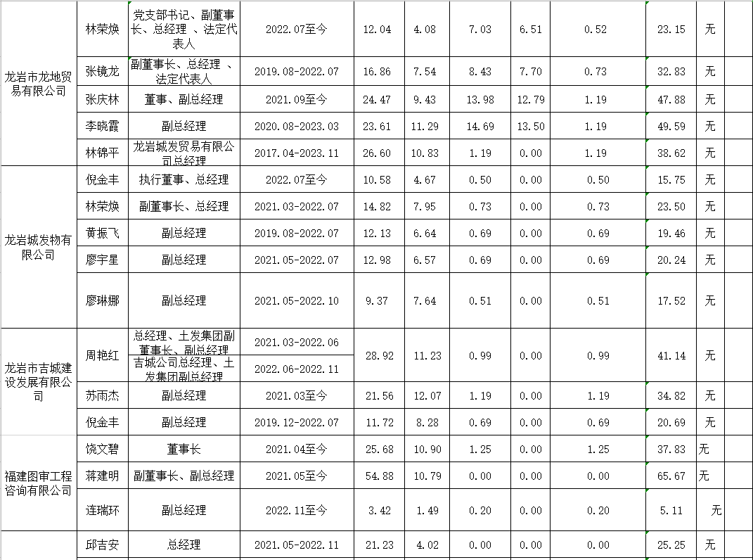城發(fā)集團(tuán)所屬企業(yè)負(fù)責(zé)人2022年度薪酬信息披露